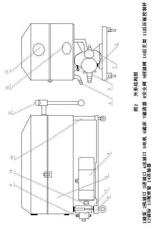 此機是由齒輪泵、濾清器、安全閥、回油閥、濾床、壓力表、濾板、濾框、濾油紙、油盤、前支架、后支架、底盤、聯(lián)軸器、以及電動機等部件組成。