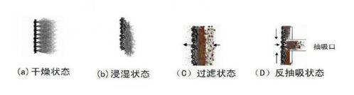 濾布結(jié)構(gòu)為大孔隙支撐層及纖維毛層,反抽吸時(shí),在反抽吸口處纖維毛會(huì)完全直立起來,清洗比較徹底,殘留很難積累。