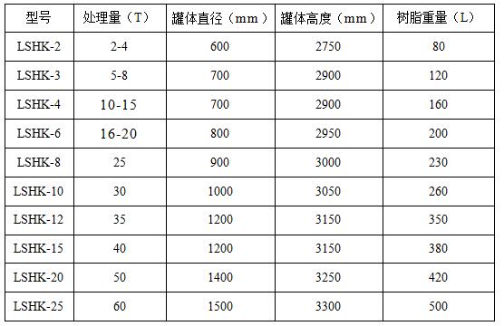 五、樹(shù)脂除氧器規(guī)格型號(hào):